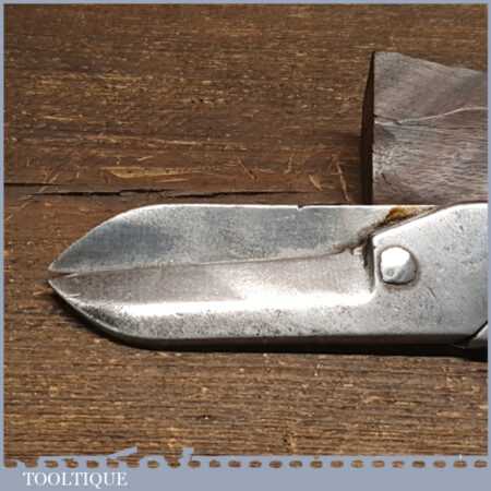 Vintage 10” tin snips in good used condition, sharpened ready for use. These have been tested by cutting a slither of 0.5mm tin from the edge to ensure these cut rather than curl up the tin.
