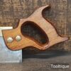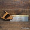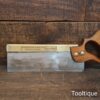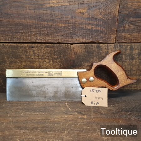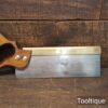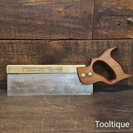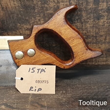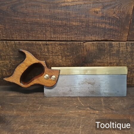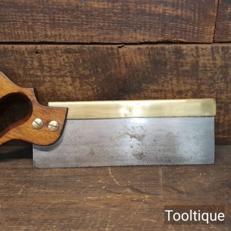 Vintage 10” W. Tyzack Turner No: 120 Brass Back Tenon Saw with 15 Tpi sharpened rip, refurbished ready for use and in good used condition. Note: A couple of cosmetic dings on the Brass but the saw runs true and straight. The saw has been thoroughly cleaned, jointed, resharpened and set by hand so that all the hard work of getting an old vintage saw right has been undertaken. We do this so that the next sharpening is easier and no more than a quick freshen up would be required. Those who are familiar with sharpening will know this is no small job and requires skill, effort and time to achieve good results.