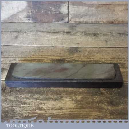 Vintage 10” x 2” natural Charnley Forest honing stone on a wooden base in good used condition. Note: lapped flat ready for use and the underside is uneven so has varied thicknesses.