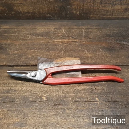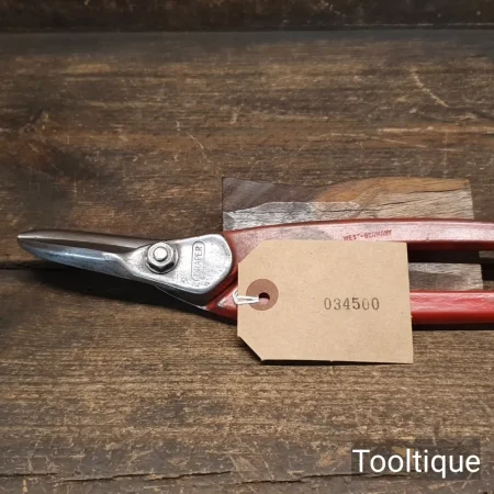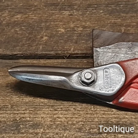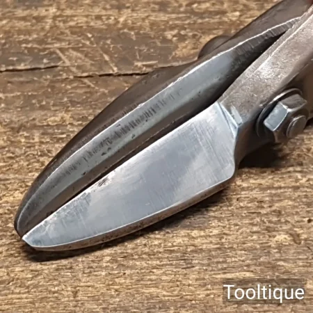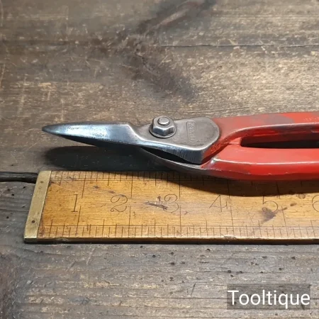 Vintage 11” Draper West Germany No: 2037R Heavy Duty Tinsnips, sharpened and refurbished ready for use and in good used condition. Note: These cut tin from the edge and a slither without causing it to roll.