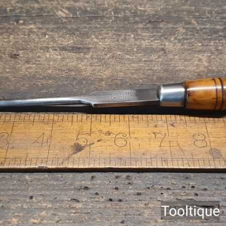 Vintage 11” I. Sorby Sheffield ¼” Flat End Screwdriver with a boxwood handle, refurbished ready for use and in good used condition. Note: The head has been redressed.
