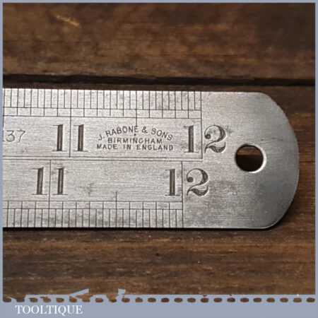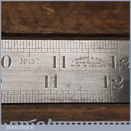 Vintage 12″ J. Rabone & Sons No: 137 imperial contraction steel rule in good used condition. Note: Single sided.