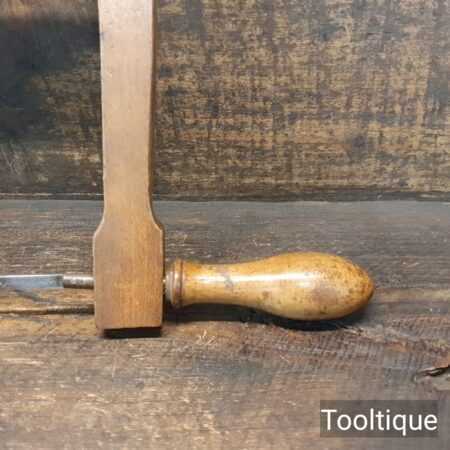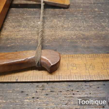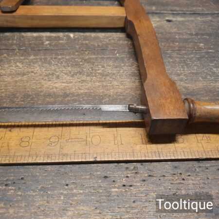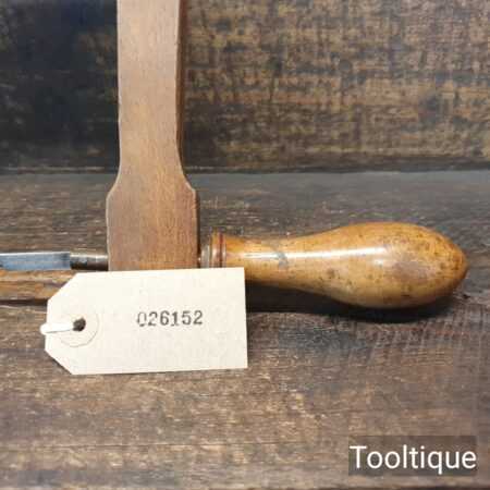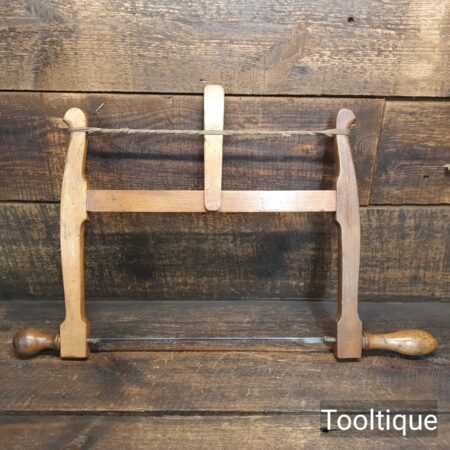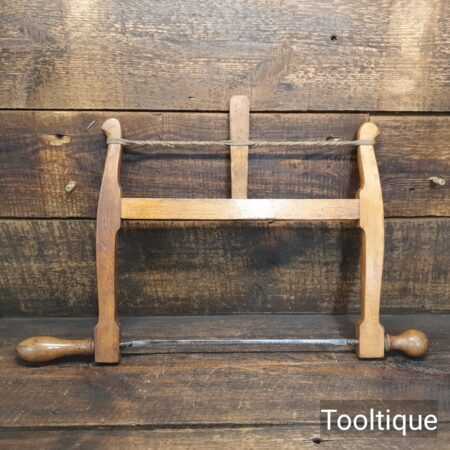 Vintage 12” beechwood bowsaw with a beech tensioner in good used condition. We run a file through the teeth to ensure it cuts properly. Note: The arms are slightly different thicknesses, but it doesn’t affect its use.