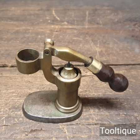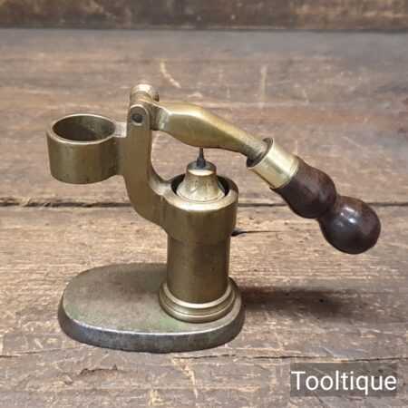 Vintage 12 Bore Decapper and Capper Cartridge reloading tool with a rosewood handle, with brass body and cast brass lever with what looks to be an ebony handle in good used condition.