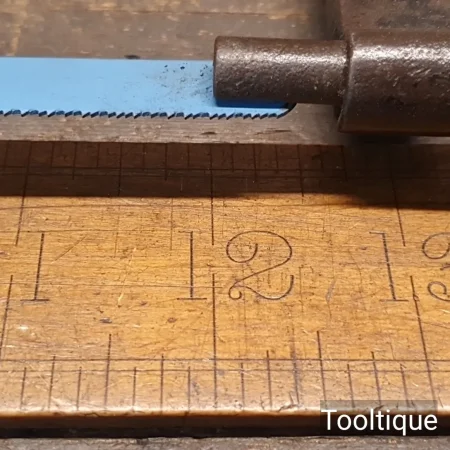 Vintage 12” Cast Steel Hacksaw with a beechwood handle in good used condition. Note: These are solid resulting in a high tension saw blade.