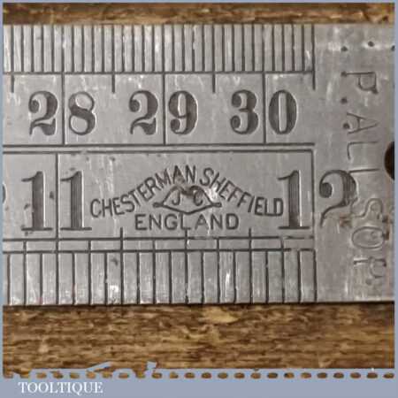 Vintage 12” Chesterman No: 1486D metric & imperial contraction steel ruler in good used condition.
