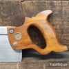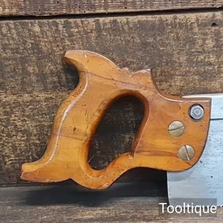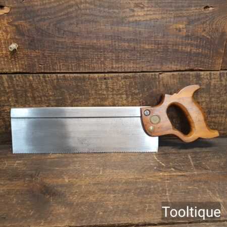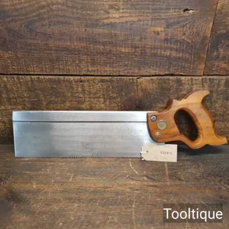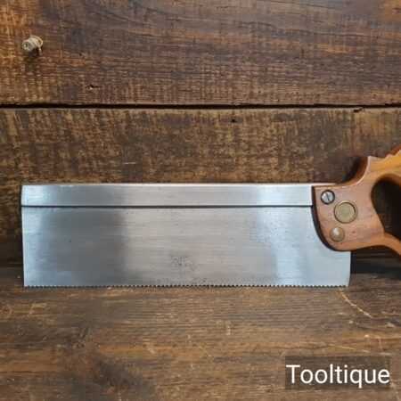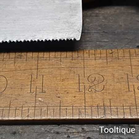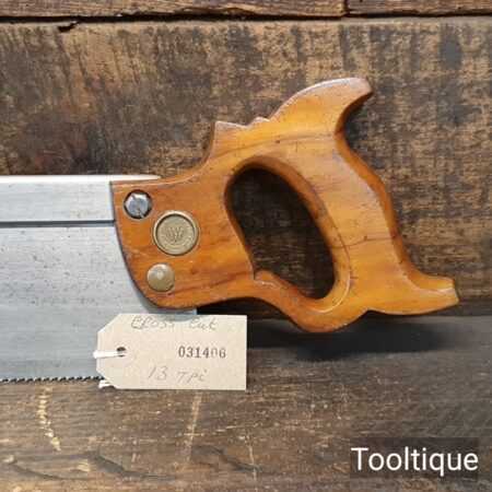 Vintage 12” E.C Atkins USA Crosscut Steel Back 13 Tpi Saw, fully refurbished ready for use and in good used condition. Note: This is a lovely saw sharpened using all three disciplines of slope, rake and fleam for a sharper cleaner cut. The saw has been thoroughly cleaned, jointed, resharpened and set by hand so that all the hard work of getting an old vintage saw right has been undertaken. We do this so that the next sharpening is easier and no more than a quick freshen up would be required. Those who are familiar with sharpening will know this is no small job and requires skill, effort and time to achieve good results.
