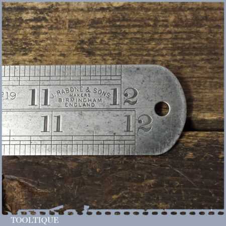 Vintage 12” J. Rabone & Sons No:19 imperial Brass contraction steel ruler in good used condition