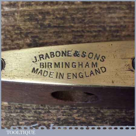 Vintage 12” J. Rabone & Sons No: 1626 mahogany and brass spirit level in good used condition. Note: The level has not been tested and may require resetting in putty if intended for use.
