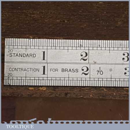 Vintage 12” John Rabone & Sons No: 142 imperial contraction steel ruler in original wrapper and in good used condition.