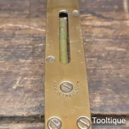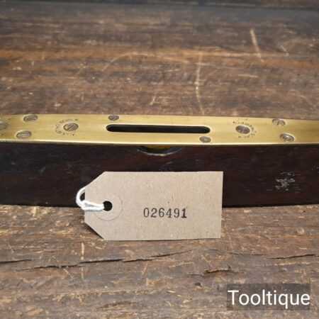 Vintage 12″ mahogany and brass adjustable spirit level in good used condition.