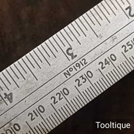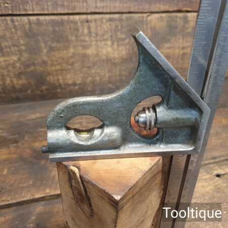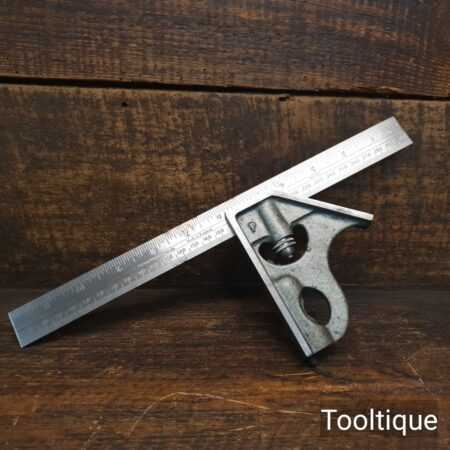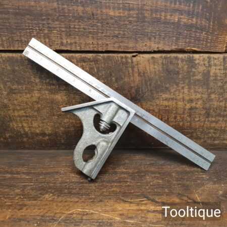 Vintage 12” Rabone Chesterman England No: 1912 combination steel square in very good used condition. Metric and Imperial rule with crisp corners and its original marking pin.