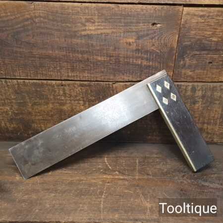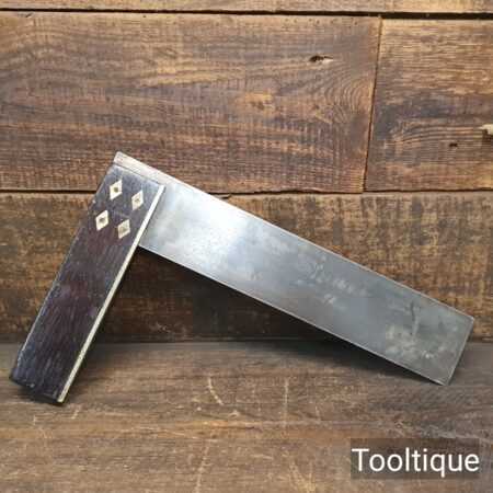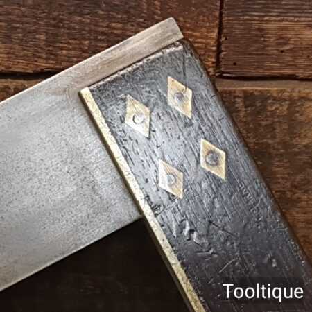 Vintage 12” Rosewood and Brass carpenters square refurbished ready for use and in good used condition. Note: Tested Square, slight minor unevenness to face of steel plate near tip that has no effect on its use.