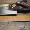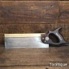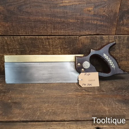 Vintage 12” Slack Sellars & Co. Ltd 14 Tpi Brass Back Tenon Saw, refurbished ready for use and in good used condition. Note: Sharpened Rip. The saw has been thoroughly cleaned, jointed, resharpened and set by hand so that all the hard work of getting an old vintage saw right has been undertaken. We do this so that the next sharpening is easier and no more than a quick freshen up would be required. Those who are familiar with sharpening will know this is no small job and requires skill, effort and time to achieve good results.