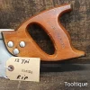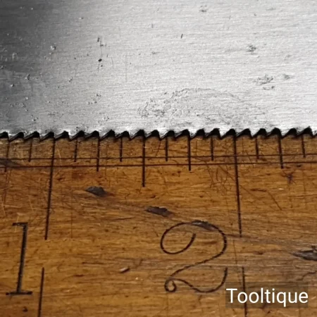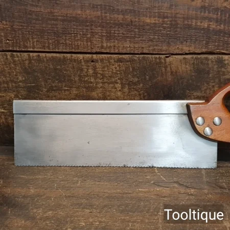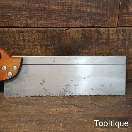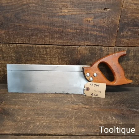 Vintage 12” Spear & Jackson Sheffield 12 TPI Steel Back Tenon Saw, sharpened Rip & refurbished ready for use and in good used condition. Note: Age hardened Sheffield Carbon Steel saw plate, noticeable when sharpening. (Important for: Holding set and longevity between sharpening.) The saw has been thoroughly cleaned, jointed, resharpened and set by hand so that all the hard work of getting an old vintage saw right has been undertaken. We do this so that the next sharpening is easier and no more than a quick freshen up would be required. Those who are familiar with sharpening will know this is no small job and requires skill, effort and time to achieve good results. The Saw runs Straight & True.