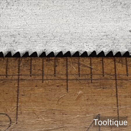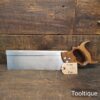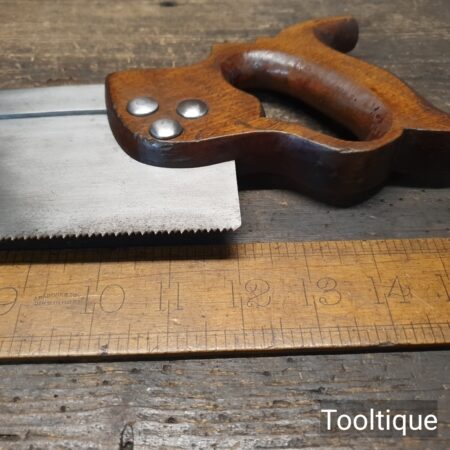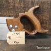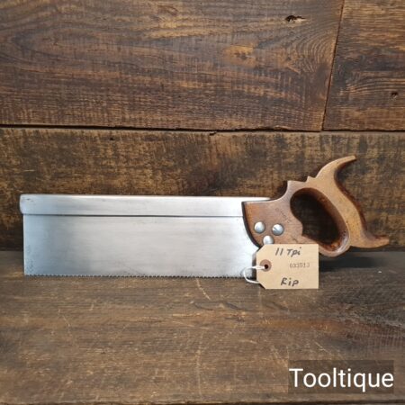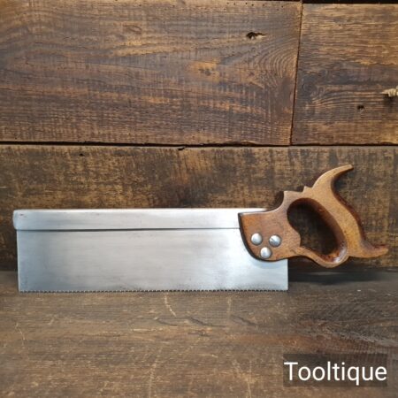 Vintage 12” Steel Back Tenon Saw with 11 Tpi sharpened rip and refurbished ready for use and in good used condition. Note: English and has good quality steel plate, maker unclear etching.