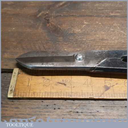 Vintage 12” tin snips in good used condition, sharpened ready for use. These have been tested by cutting a slither of 0.5mm tin from the edge to ensure these cut rather than curl up the tin.