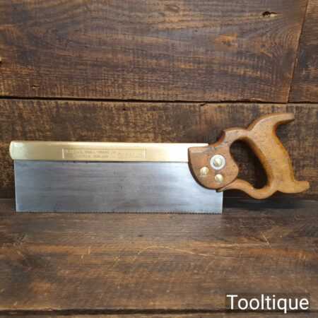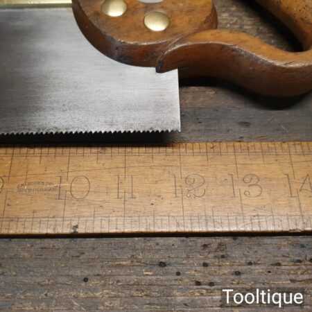 Vintage 12” W. Tyzack Sons & Turner No: 120 brass back dovetail tenon saw with 12 tpi, fully refurbished and sharpened rip ready for use. Note: Relaxed rip tooth geometry ideal for hardwoods and precision cuts.
