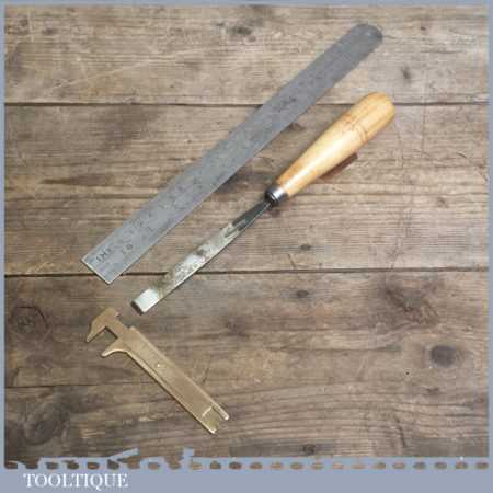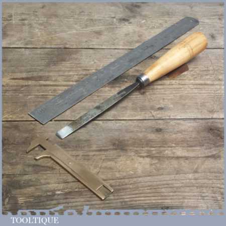 Vintage forged steel carving chisel by Buck Brothers in good condition and has been sharpened & honed ready for use, this straight flat chisel measures approx 1/2” wide.