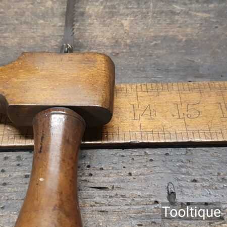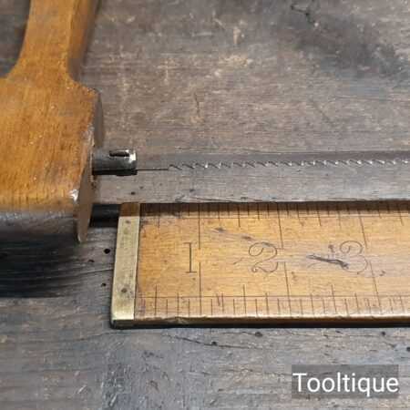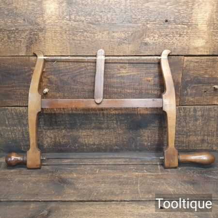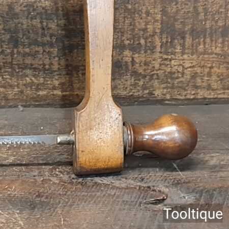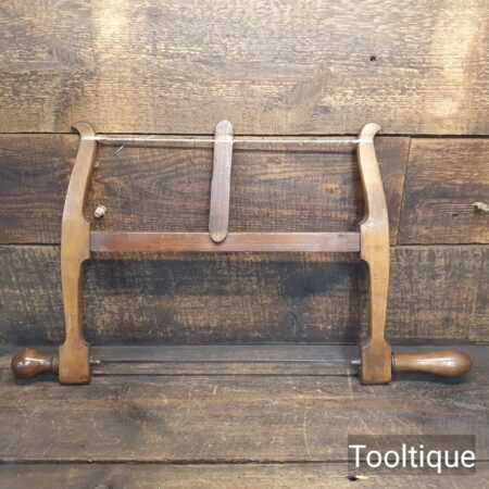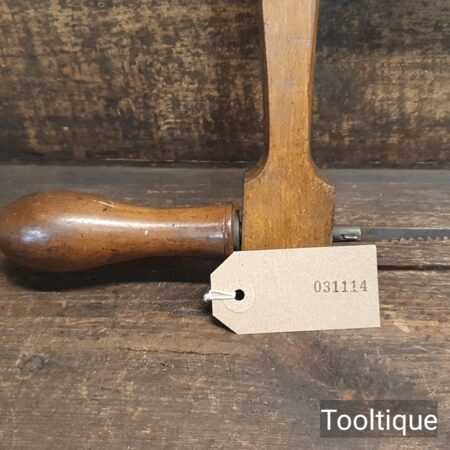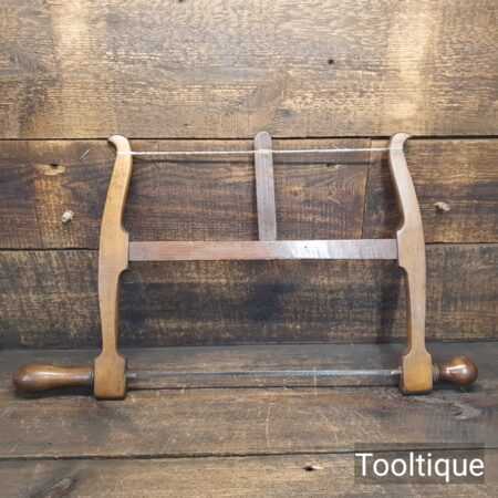 Vintage 13” beechwood bow saw with a 6 tpi blade sharpened and restrung ready for use and in good used condition.