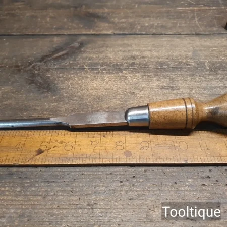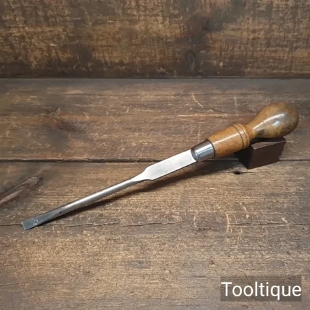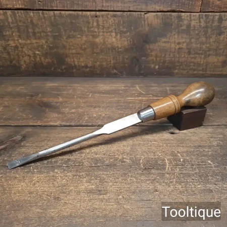 Vintage 13” Long Signal of Sheffield 13/32” Flat Cabinetmakers Screwdriver with a Beechwood Handle, refurbished ready for use and in good used condition. Note: just over 3/8” wide.