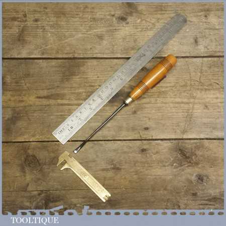 Vintage forged steel carving chisel by Murray of Manchester in good condition and has been sharpened & honed ready for use, this back bent spoon bit measures approx 1/4” wide.