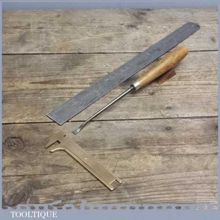 Vintage forged steel carving chisel by Herring Bros in good condition and has been sharpened & honed ready for use, this curved spoon bit measures approx 1/4” wide.
