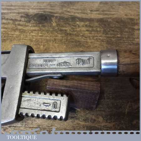 Vintage 14” Gedore of Germany Stilson wrench with wooden handle in good used condition. These are quite early and scarce.