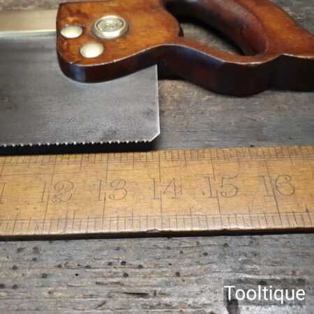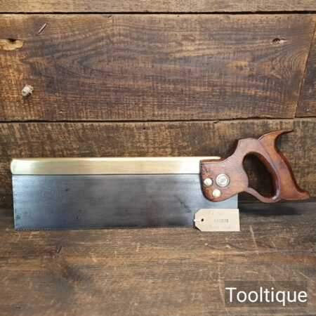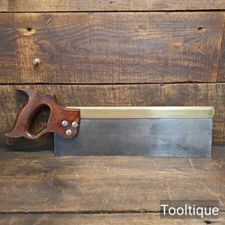 Vintage 14” Henry Disston USA 12 Tpi Brass Back Saw fully refurbished ready for use and in good used condition. Note: This saw has been sharpened incorporating all three disciplines, slope, rake and fleam. The steel in these Disston saws is superb, they are hard on the file yet supple enough to set and in my opinion has never been replicated.