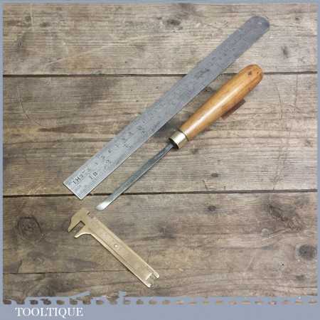 Vintage forged steel carving chisel by S J ADDIS in good condition and has been sharpened & honed ready for use, this straight skew corner chisel measures approx 1/4” wide.