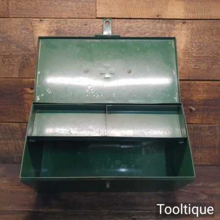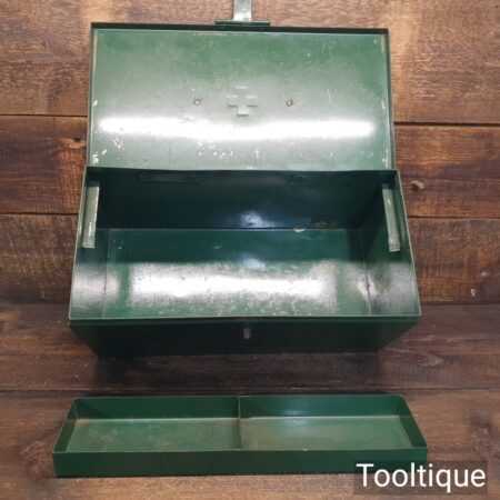 Vintage 16″ x 8″ x 8″ pressed steel medical first aid box in good used condition.