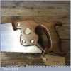 The saw has been thoroughly cleaned, jointed, resharpened and set by hand so that all the hard work of getting an old vintage saw right has been undertaken. We do this so that the next sharpening is easier and no more than a quick freshen up would be required. Those who are familiar with sharpening will know this is no small job and requires skill, effort and time to achieve good results.