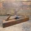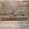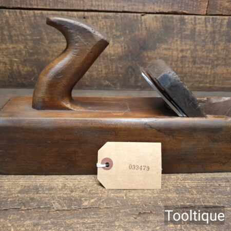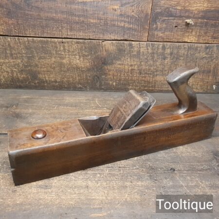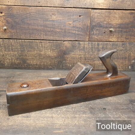 Vintage 17” Beechwood Jack Plane with a Sorby Tapered Iron, refurbished ready for use and in good used condition. The plane has been lapped Flat, the iron face flattened, sharpened Square and its chip breaker is fettled in ready for use. Note: Sidewall damage caused by user not sharpening the iron square has been repaired to a smooth finish, otherwise it’s a good user that will remove stock quickly.