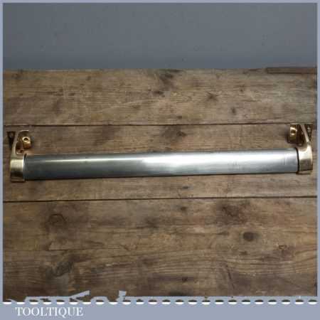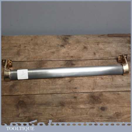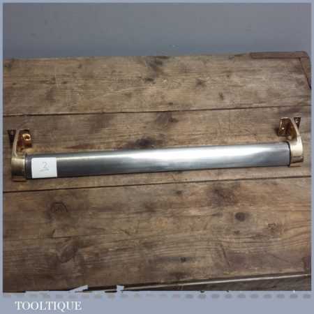 Description: Vintage Polished Steel and Brass 18″ Door handles probably from a public building but would work just as well as a Tea Towel rail in a kitchen. These are treated with a lacquer to help preserve the look.