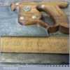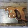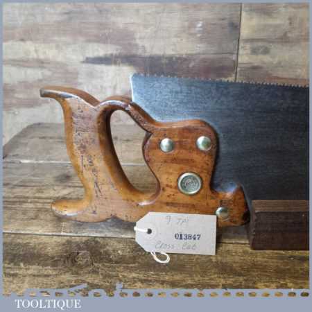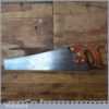 The saw has been thoroughly cleaned, jointed, resharpened and set by hand so that all the hard work of getting an old vintage saw right has been undertaken. We do this so that the next sharpening is easier and no more than a quick freshen up would be required. Those who are familiar with sharpening will know this is no small job and requires skill, effort and time to achieve good results.