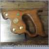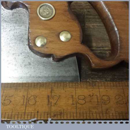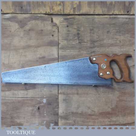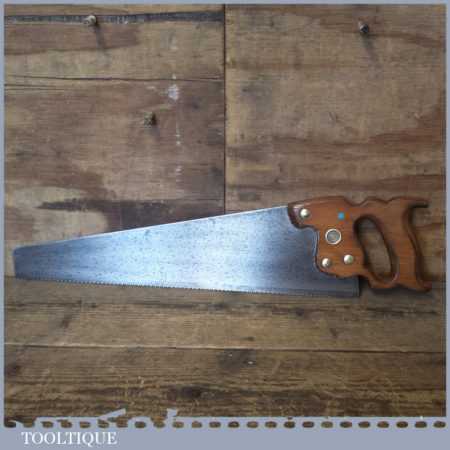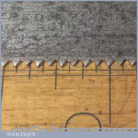 The saw has been thoroughly cleaned, jointed, resharpened and set by hand so that all the hard work of getting an old vintage saw right has been undertaken. We do this so that the next sharpening is easier and no more than a quick freshen up would be required. Those who are familiar with sharpening will know this is no small job and requires skill, effort and time to achieve good results.