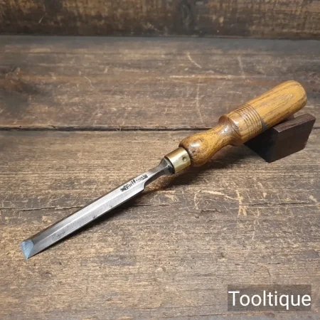 Vintage 19/32” John Bull Sheffield Forged Laminated Steel Bevel Edge Chisel with an Ashwood Handle, refurbished ready for use and in good used condition. All refurbished chisels are water cooled during the sharpening & flattening process to ensure the tempering is not affected.