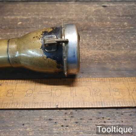 Vintage 1920’s Miners Brass safety torch which is in good original condition. This has the internal parts but needs batteries and bulb, not tested.