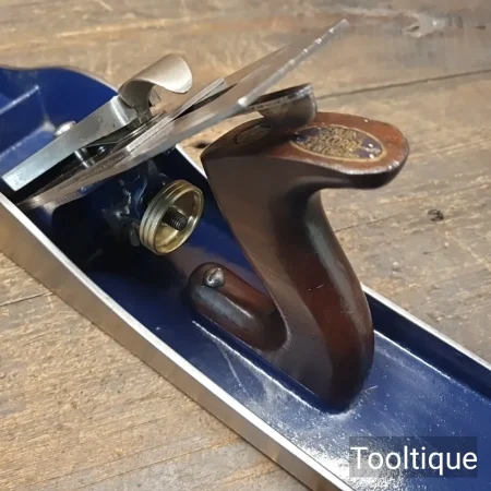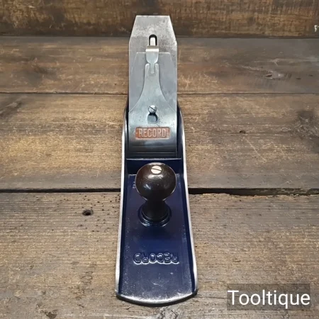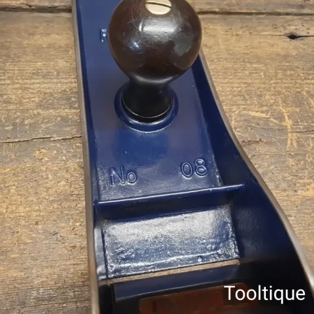 Vintage 1930’s Record England No: 08 Jointer Plane with Rosewood Handles, fully refurbished ready for use and in good used condition. The plane has all its original parts including a much sort after 2 5/8” Crucible Tungsten steel Iron. Note: Lovely Plane that took a hell of a lot of work to get to this standard but well worth every ounce of effort. When refurbishing planes, we do not merely clean them to make them look good, they are restored to a level that ensures this plane is actually ‘in plane to within 0.06mm’ sharpened, honed and all the components are thoroughly cleaned so that they move freely. Our planes are specifically reconditioned to satisfy professional tradesmen who will instantly know the difference between buying one of our planes over general other used ones.