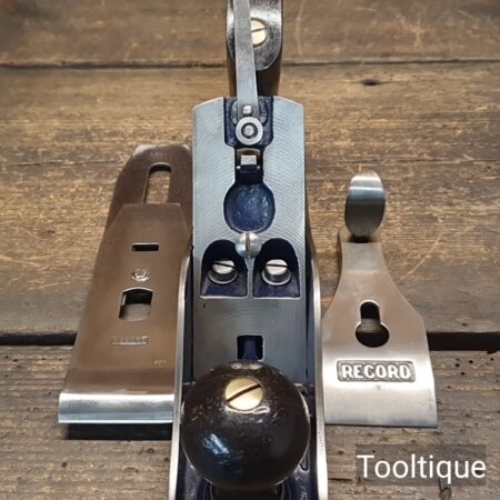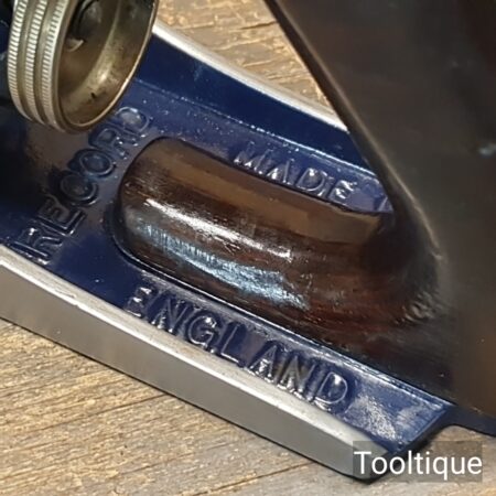 Vintage 1930’s Record England No: 03 Smoothing Plane with Rosewood Handles and original Crucible Steel Iron, fully refurbished ready for use and in good used condition. Note: Good solid and smooth repair to the tote. When refurbishing planes, we do not merely clean them to make them look good, they are restored to a level that ensures this plane is actually ‘in plane to within 0.01mm’ sharpened, honed and all the components are thoroughly cleaned so that they move freely. Our planes are specifically reconditioned to satisfy professional tradesmen who will instantly know the difference between buying one of our planes over general other used ones.