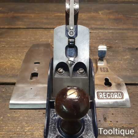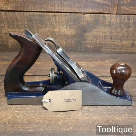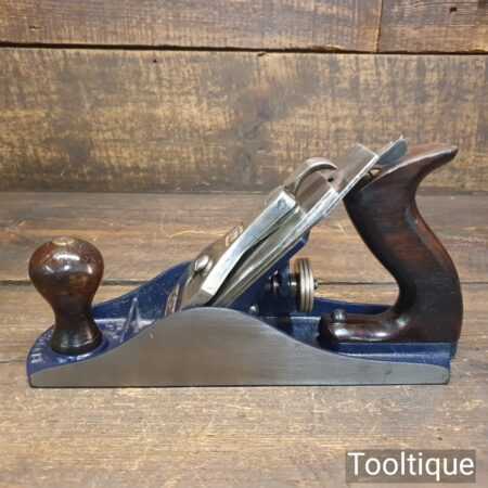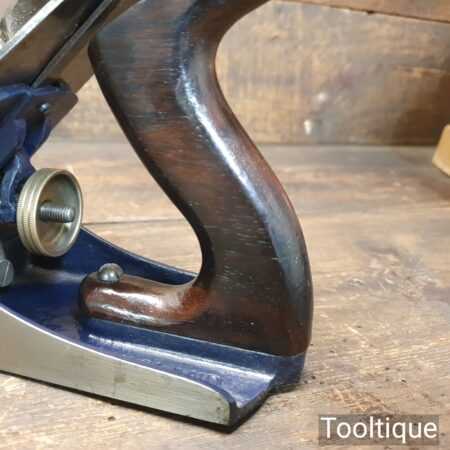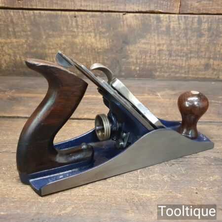 Vintage 1930’s Record No: 04 ½ SS (stay set) wide bodied smoothing plane with rosewood handles, fully refurbished and in good used condition, ready to use. Manufactured between 1932-38. Note: good solid repair to the tote handle.