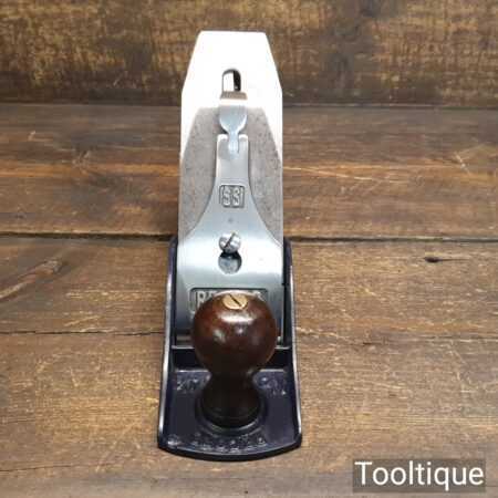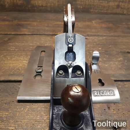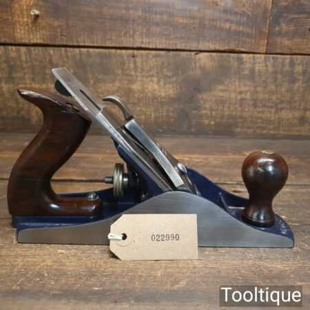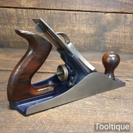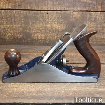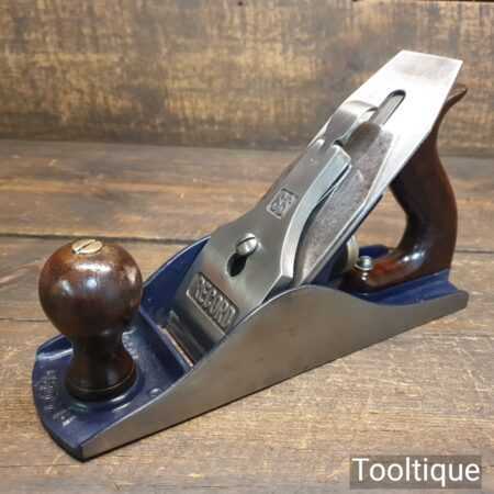 Scarce vintage 1930’s Record No: 04 ½ SS (stay set) wide bodied smoothing plane with rosewood handles, fully refurbished and in good used condition, ready to use. Manufactured between 1932-38. Note: solid tote repair.
