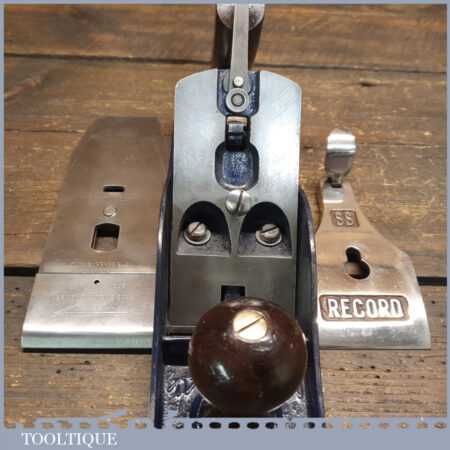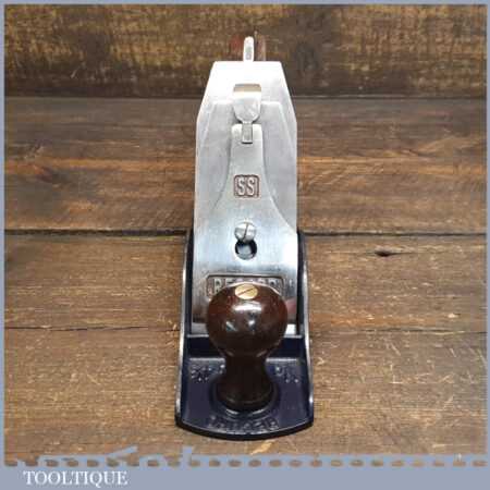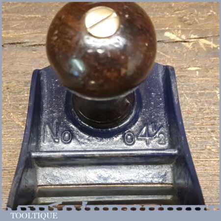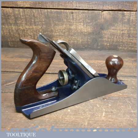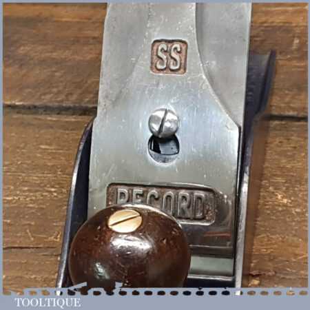Vintage 1930’s Record No: 04 ½ SS (stay set) wide bodied smoothing plane, fully refurbished and in good used condition, ready to use. Manufactured between 1932-38. Note: Original rosewood handles and the tote has had a solid repair and is comfortable in the hand.