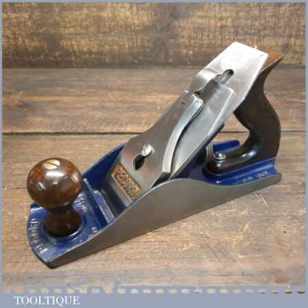 Vintage 1930’s Record No: 04 ½ wide bodied smoothing plane, fully refurbished and in good used condition, ready to use. Note: Replacement wooden handles.