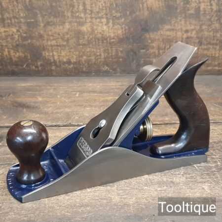 Vintage 1930’s Record No: 04 Smoothing Plane with Rosewood Handles and original Crucible Steel Iron, fully refurbished ready for use and in good used condition. When refurbishing planes, we do not merely clean them to make them look good, these are restored to a level that ensures each plane is actually ‘in plane to within 0.02mm’ sharpened, honed and all the components are thoroughly cleaned so that they move freely. Our planes are specifically reconditioned to satisfy professional tradesmen who will instantly know the difference between buying one of our planes over general other used ones.
