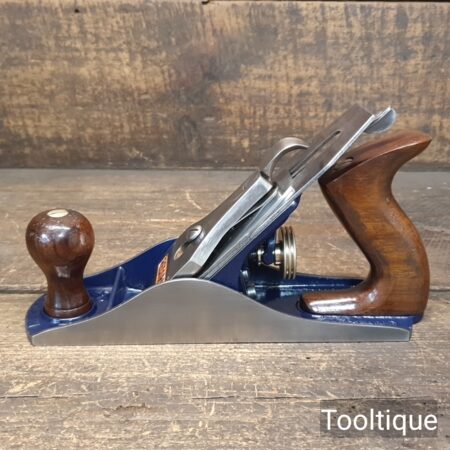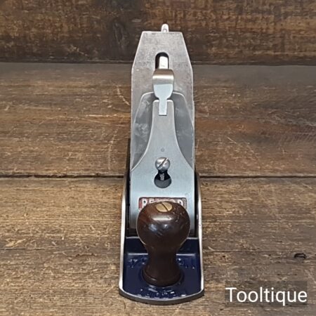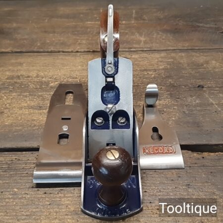 Vintage 1930’s Record No: 04 Smoothing Plane with Rosewood Handles & Crucible Steel Iron, fully refurbished ready for use and in good used condition. Note: Undoubtably Record tools best period of Production. When refurbishing planes, we do not merely clean them to make them look good, they are restored to a level that ensures this plane is actually ‘in plane to within 0.02mm’ sharpened, honed and all the components are thoroughly cleaned so that they move freely. Our planes are specifically reconditioned to satisfy professional tradesmen who will instantly know the difference between buying one of our planes over general other used ones.