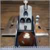 When refurbishing planes, we do not merely clean them to make them look good, they are restored to a level that ensures they are actually ‘in plane to 0.05mm’ sharpened, honed and all the components are thoroughly cleaned so that they move freely. Our planes are specifically reconditioned to satisfy professional tradesmen who will instantly know the difference between buying one of our planes over general other used ones