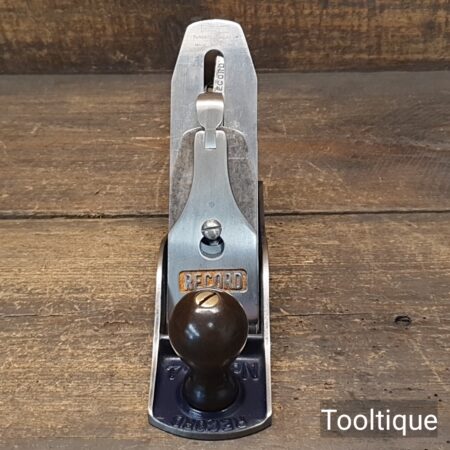 Vintage 1950’s Record England No: 04 Smoothing Plane refurbished ready for use and in good used condition. When refurbishing planes, we do not merely clean them to make them look good, they are restored to a level that ensures this plane is actually ‘in plane to within 0.02mm’ sharpened, honed and all the components are thoroughly cleaned so that they move freely. Our planes are specifically reconditioned to satisfy professional tradesmen who will instantly know the difference between buying one of our planes over general other used ones.