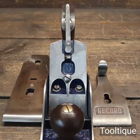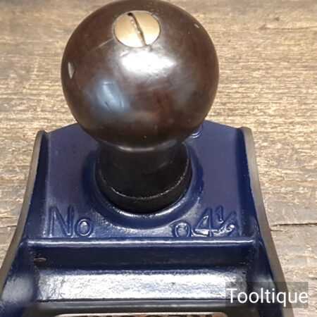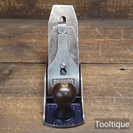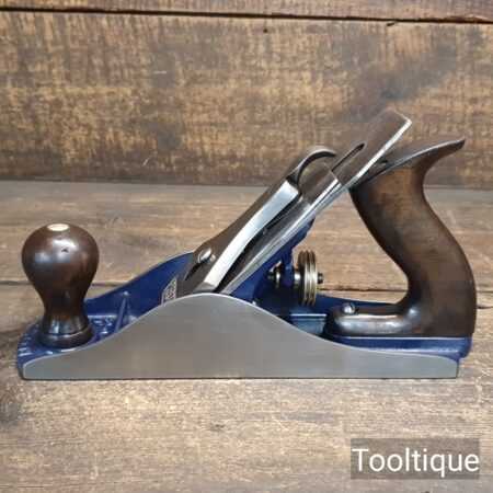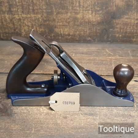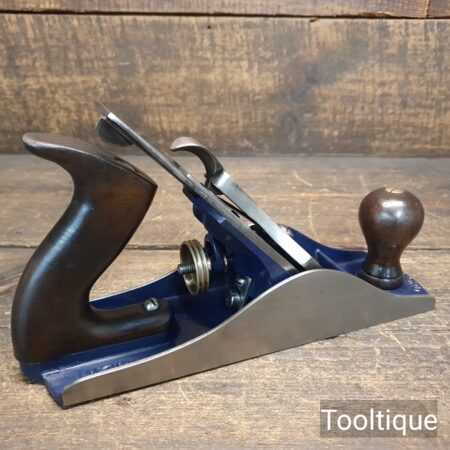 Vintage 1950’s Record No: 04 ½ Wide bodied Smoothing Plane fully refurbished ready for use and in good used condition. Note: 2 3/8” wide Iron. When refurbishing planes, we do not merely clean them to make them look good, these are restored to a level that ensures each plane is actually ‘in plane to within 0.02mm’ sharpened, honed and all the components are thoroughly cleaned so that they move freely. Our planes are specifically reconditioned to satisfy professional tradesmen who will instantly know the difference between buying one of our planes over general other used ones.