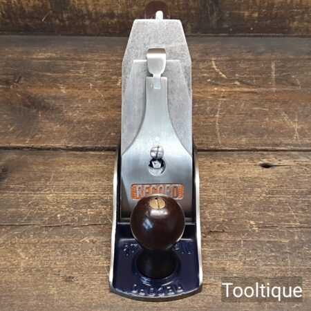 Vintage 1950’s Record No: 04 ½ wide bodied smoothing plane, fully refurbished ready for use and in good used condition. When refurbishing planes, we do not merely clean them to make them look good, they are restored When refurbishing planes, we do not merely clean them to make them look good, they are restored to a level that ensures this plane is actually ‘in plane to within 0.02mm’ sharpened, honed and all the components are thoroughly cleaned so that they move freely. Our planes are specifically reconditioned to satisfy professional tradesmen who will instantly know the difference between buying one of our planes over general other used ones.